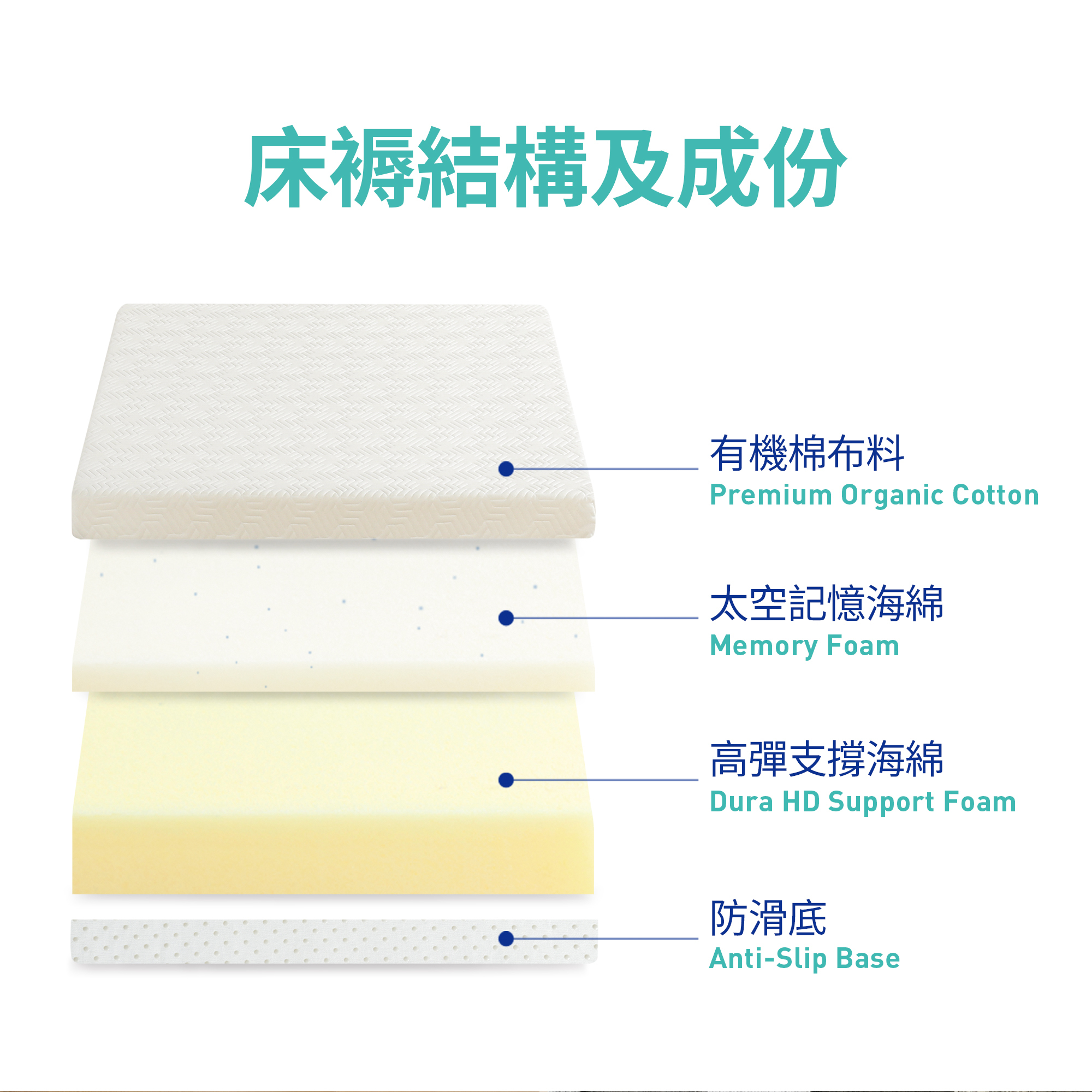 Organic-Eco Waterproof Memory Foam Topper (8cm H)